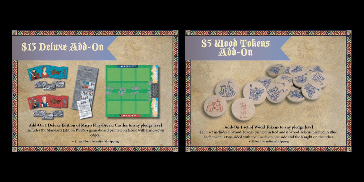 Kingdoms Summary 4-Addons ← Previous Next → Add- On graphics. As you can see, this campaign allowed you to purchase the first game MSP Games produced: Micro Play-Break: Castles.
