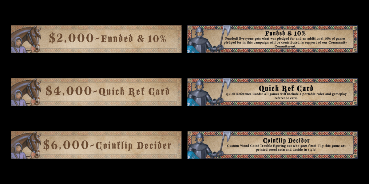 Kingdoms Summary 6-Stretch Goals ← Previous Next → Stretch Goal graphics. Left: How they appeared while the goal was unmet. Right: How they appeared after the goal was met.